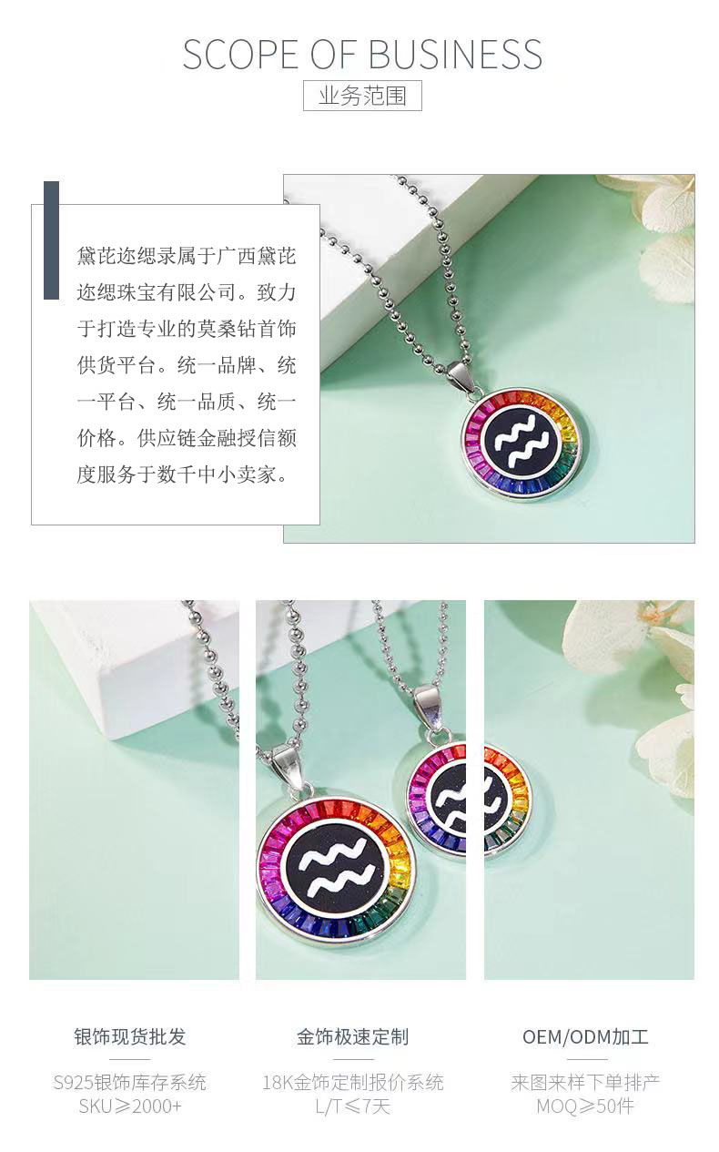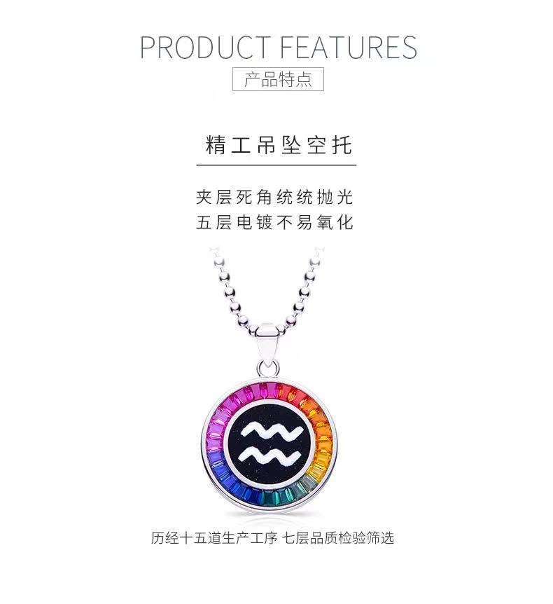 水瓶座彩虹色合成宝石星座项链S925银镀白金