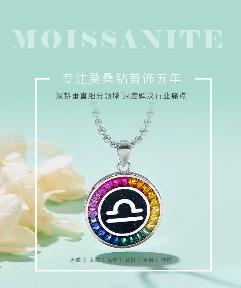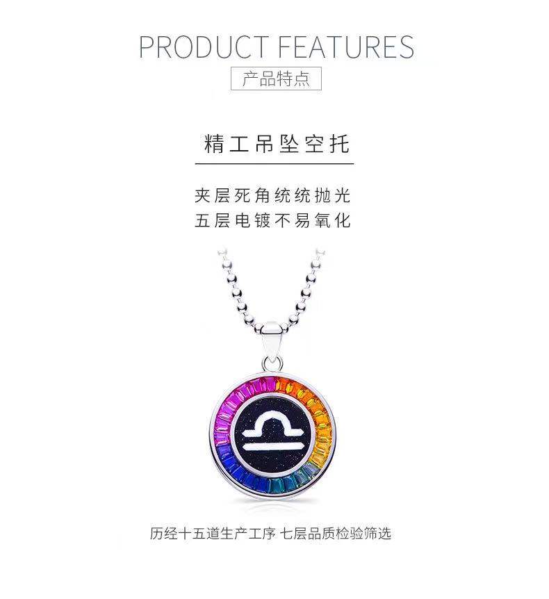 天秤座彩虹色合成宝石星座项链S925银镀白金