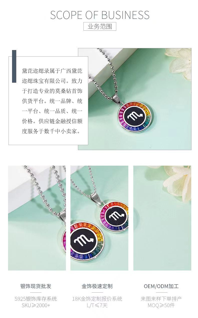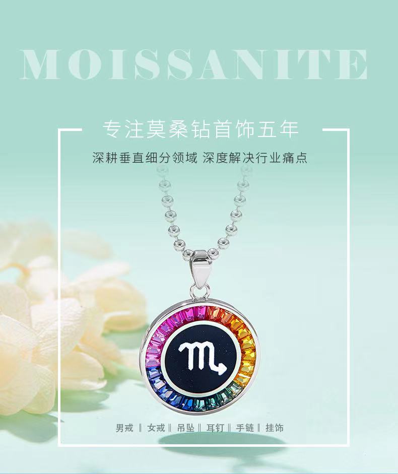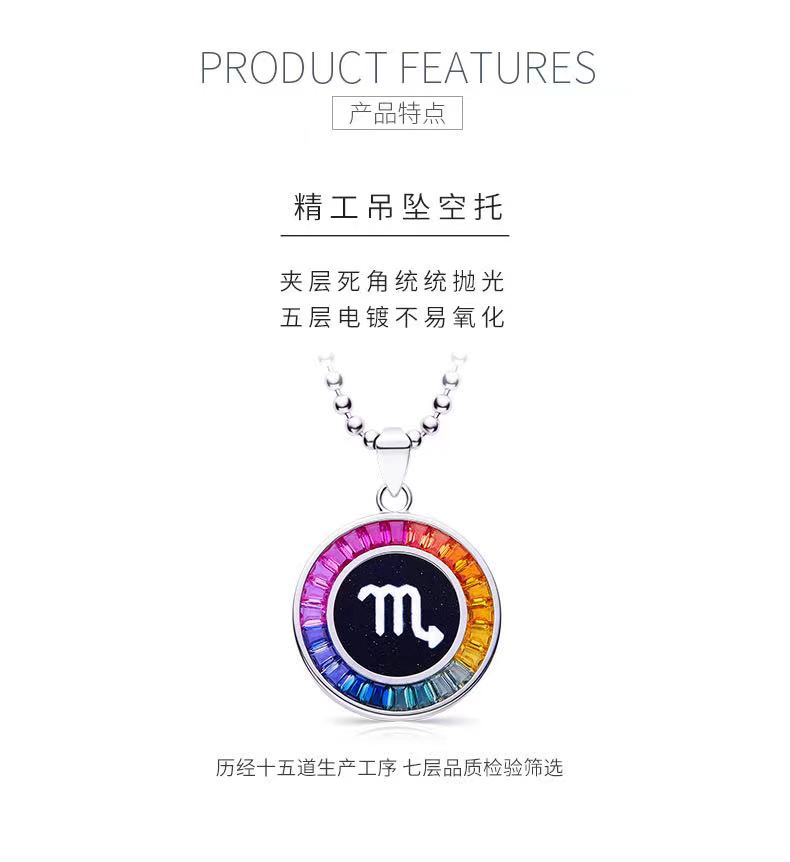 天蝎座彩虹色合成宝石星座项链S925银镀白金