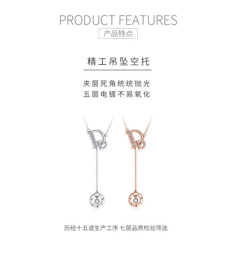 D字母S925银镶莫桑钻项链D色VVS