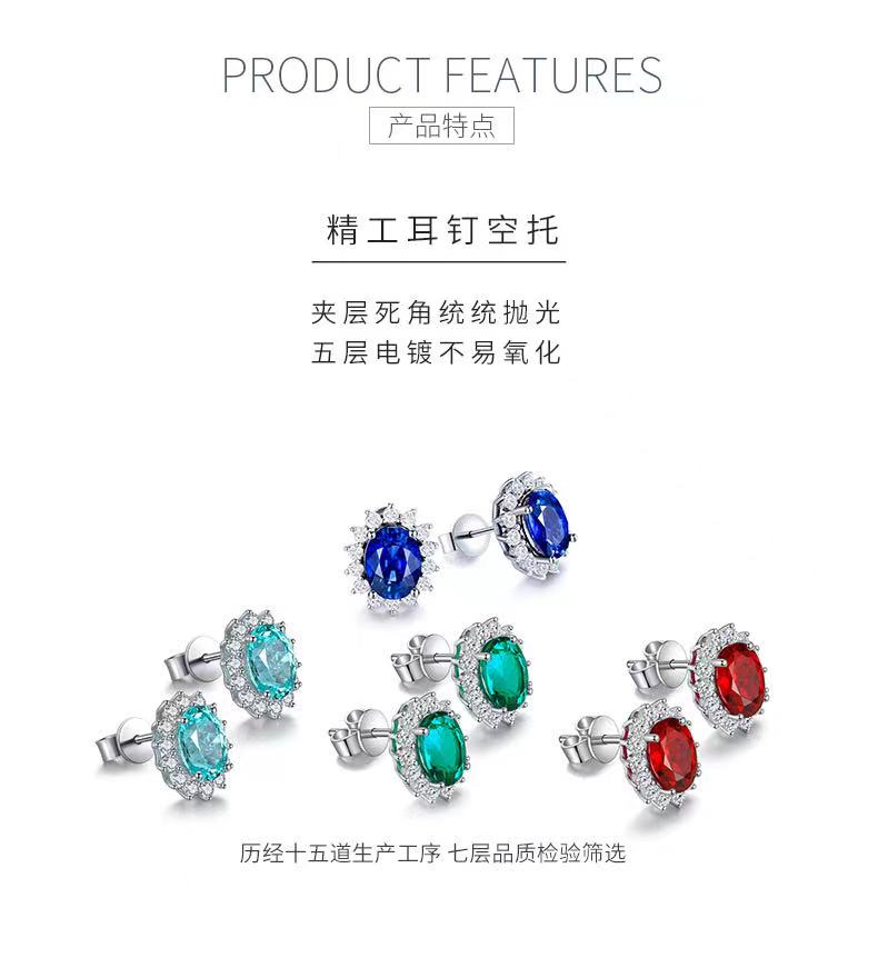 E008培育彩宝S925银镀白金耳钉3.4克拉