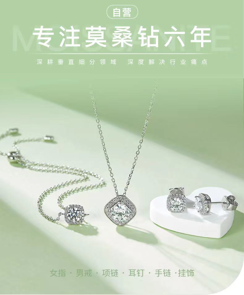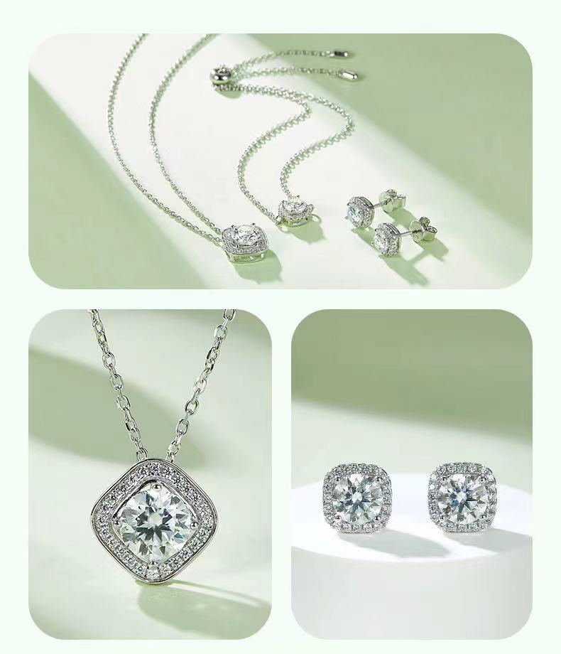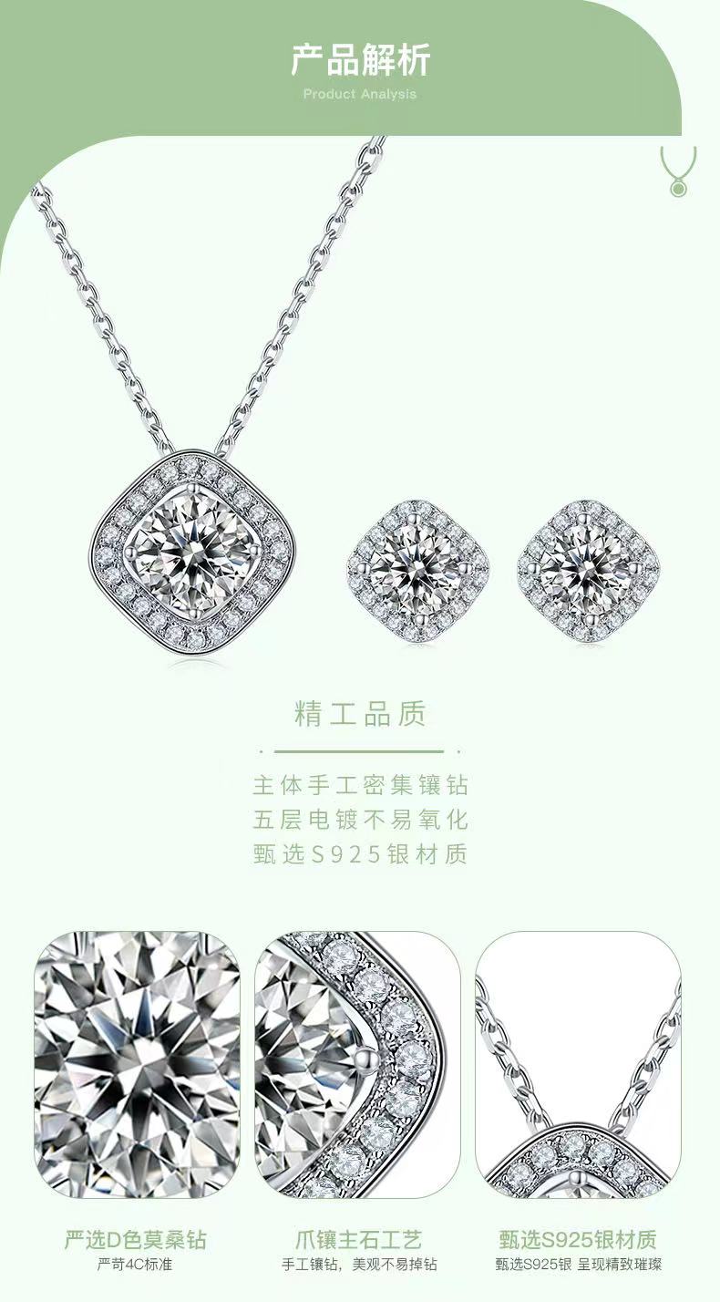 豪华方包S925银镀白金莫桑钻耳钉1.5ct