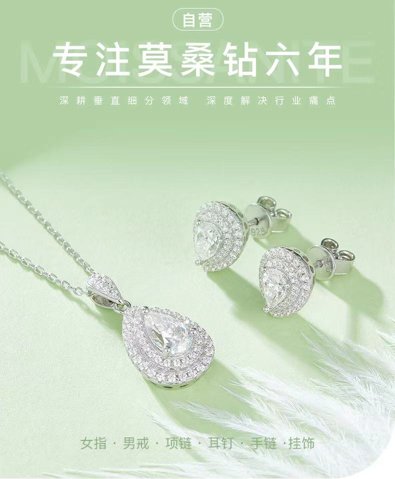 豪镶梨形S925银镀白金莫桑钻耳钉0.5ct